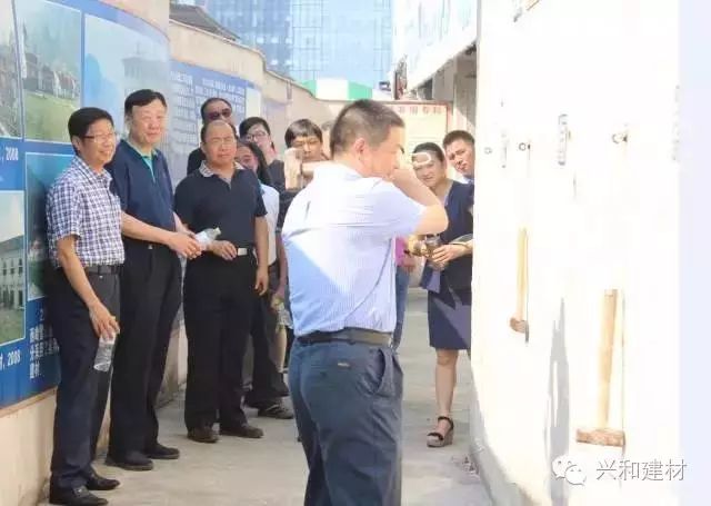 △发明人周兴和先生陪同各位领导及专家参观星河建材防火实验